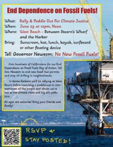 June 27, 2023 June 29 – Paddle Out for Climate Justice at West Beach at Noon Call on Governor Newsom to protect frontline communities, and make California truly independent of fossil fuels What: Rally and Paddle Out for Climate Justice When:...